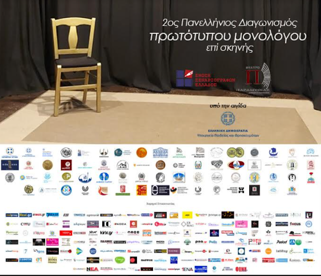 Ανοιχτές παραμένουν οι αιτήσεις συμμετοχής στον "2ο Πανελλήνιο Διαγωνισμό Πρωτότυπων Μονολόγων επί Σκηνής" μέχρι τις 30 Μαρτίου. Η Ένωση Σεναριογράφων Ελλάδος έπειτα από την άκρως επιτυχημένη διεξαγωγή του 1ου Πανελλήνιου Διαγωνισμού Πρωτότυπων Μονολόγων επί Σκηνής, αποφάσισε να καθιερώσει τον διαγωνισμό, ως ετήσια Πανελλήνια πολιτιστική εκδήλωση.
